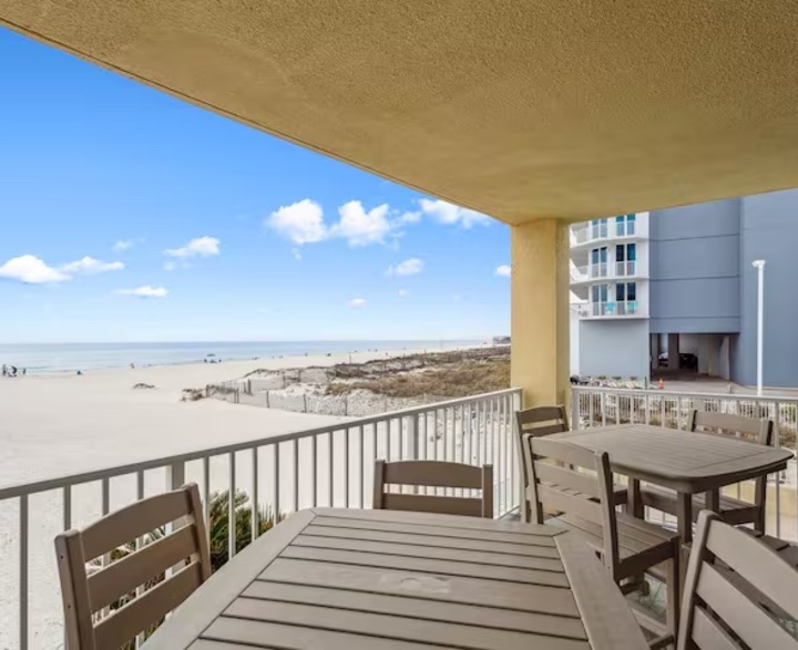 Watching the waves is my favorite part of staying here. It's unreal, when the tide is in, it's so beautiful. I've had people say I've never been this close to the water. Newly renovated, "The Whaler" 1D is a 3-bedroom, 2-bathroom condo on the first floor, steps from the sugar-white sands of Gulf Shores. This beautifully decorated oasis offers stunning ocean views and comfortably sleeps eight guests. Enjoy coffee on your private balcony, soaking in the ocean's sights and sounds. Prepare delicious meals in the fully equipped kitchen featuring a coffee maker, wet bar, and ample dining space. Unwind in the peaceful accommodations.