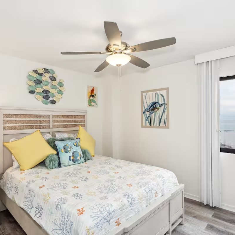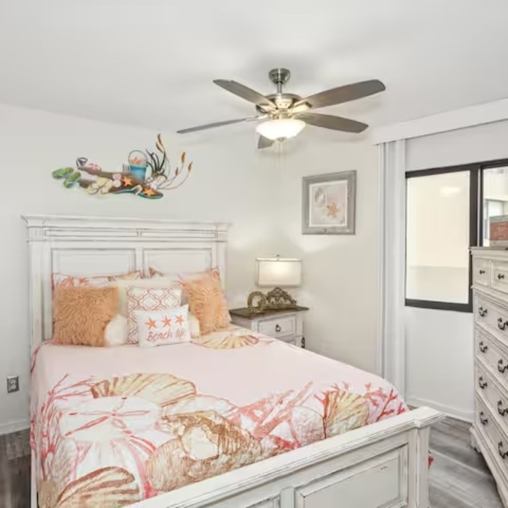 Watching the waves is my favorite part of staying here. It's unreal, when the tide is in, it's so beautiful. I've had people say I've never been this close to the water. Newly renovated, "The Whaler" 1D is a 3-bedroom, 2-bathroom condo on the first floor, steps from the sugar-white sands of Gulf Shores. This beautifully decorated oasis offers stunning ocean views and comfortably sleeps eight guests. Enjoy coffee on your private balcony, soaking in the ocean's sights and sounds. Prepare delicious meals in the fully equipped kitchen featuring a coffee maker, wet bar, and ample dining space. Unwind in the peaceful accommodations.